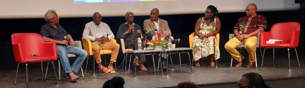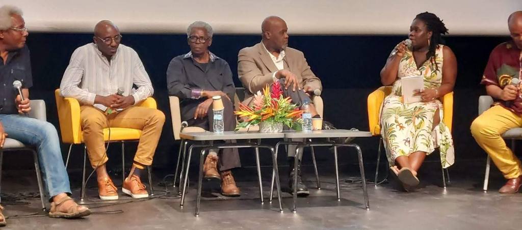 HISTOIRE, PATRIMOINE ET ENGAGEMENT : de gauche à droite, Philippe VERDOL, Nathan LUCE, Roger TOUMSON, Michel N. CHRISTOPHE, Jennifer ITHANY, Jean-Luc DIVIALLE.